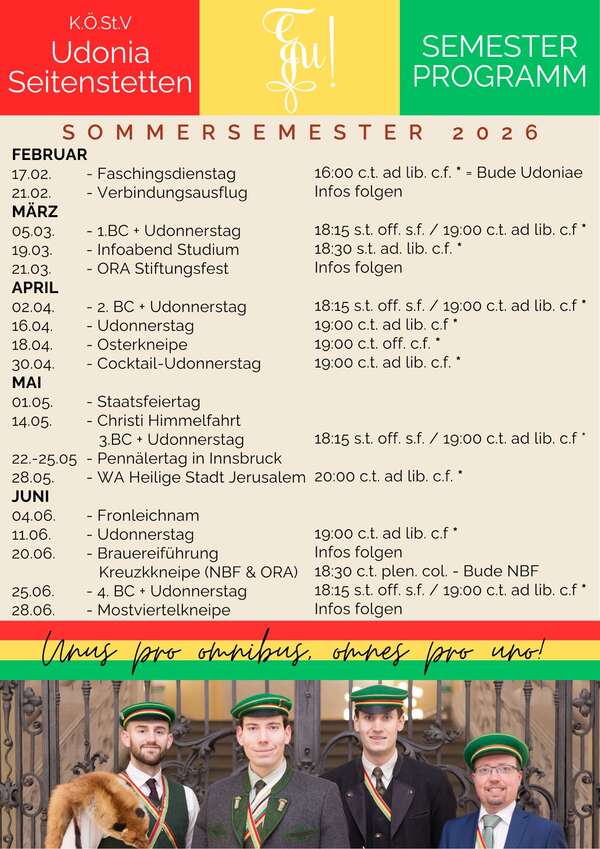 Hier findet ihr das brandneue Semesterprogramm für das Sommersemester 2026 - Wir freuen uns auf zahlreichen Besuch auf der Bude (Am Kosterberg 2, 3353 Seitenstetten)!