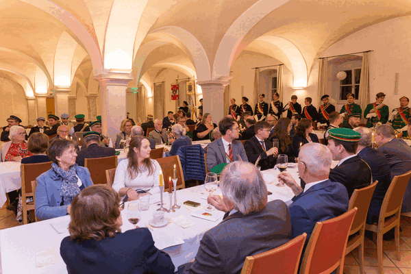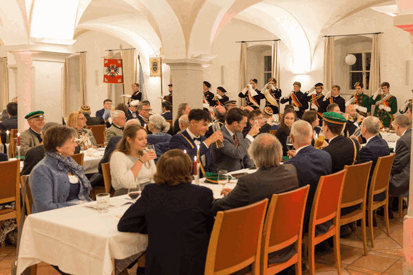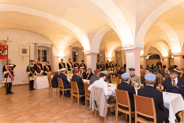 Durch die unerwartete Ankunft von 12 Kbr. e.v. Nibelungia-Linz, die mit dem AH RR Ing. Rudolf Halbmayr v. Hektor mitkamen, stieß der Saal an die Grenzen seiner Aufnahmefähigkeit, sodass einige Teilnehmer mit Wandsesseln vorlieb nehmen mussten.