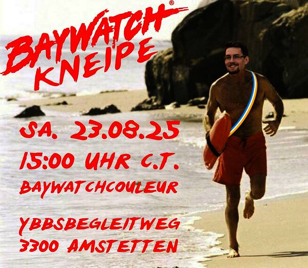 Baywatch-Kneipe gemeinsam mit der K.Ö.St.V. Ostarrichia Amstetten am Ybbsufer (Ybbsbegleitweg) in Amstetten in Baywatch-Couleur